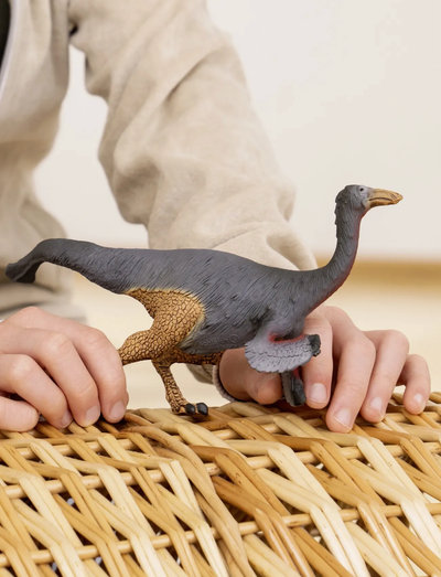 Se upp! gallimimusen är på väg att springa förbi! usch – den har försvunnit igen! dinosaurien kan springa så snabbt att den lätt kan försvinna ur sikte. det kanske är därför du ska ha den i närheten. på så sätt kan du ta tid på dig att beundra denna dino, som har fjädrar på frambenen, en elegant lång hals och en tjock näbb, precis som en fågel. gallimimusen kan inte flyga, men det behöver den inte, för den kan bara springa iväg blixtsnabbt istället!