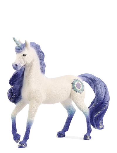 Enhörningshingsten förtrollar invånarna i BAYALA® som beundrar hans hisnande starka färger och stolta hållning. Hans vackra mandalatatuering föreställer en mystisk triangel, som är en symbol för magisk kraft. Den blå tatueringen i mitten lyser lika intensivt som himlens färg. Hingsten är en respektingivande varelse men samtidigt en snäll och kärleksfull far som gillar att leka med sitt enhörningsföl. Den nya, färgglada enhörningsfamiljen är lätt att känna igen på de unika mandalatatueringar. Familjen bor ensligt på vidderna vid BAYALA®s färgsprakande mandalakullar.