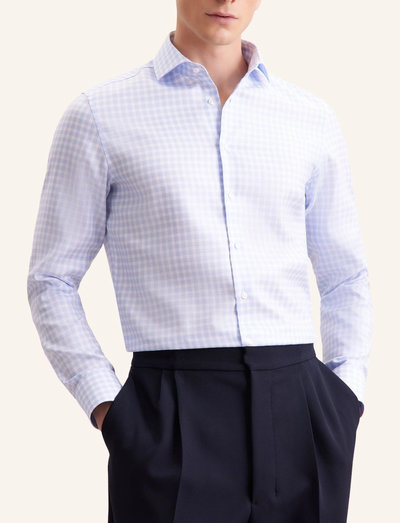StrykfriDenna skjorta är skapad för en raffinerad silhuett och har en klassisk spread-krage. Det subtila mönstret ger ett visuellt intresse, vilket gör den till ett mångsidigt val för både professionella och smarta avslappnade sammanhang. De långa ärmarna och den skräddarsydda passformen säkerställer en polerad look.
