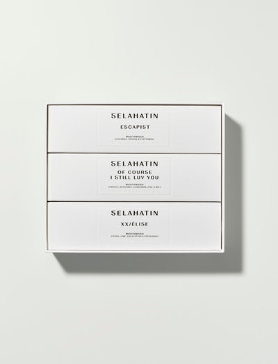 "Selahatins Mediterranean Homesick Blues Set innehåller 3 flaskor med 200 ml av ursprungliga dofter: Escapist, Of Course I Still Luv You & XX/Élise.