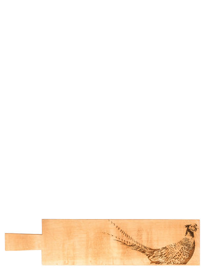 Gör din servering elegant med vårt långa serveringsbräde i ek med fasanmotiv. Ett elegant och praktiskt val för tapas, ostar eller som present till naturälskare.