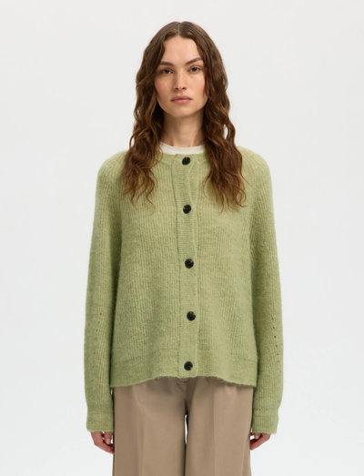Denna cardigan har raglanärmar och knäppning framtill, och den ger en bekväm, normal passform. O-halsen och de ribbade muddarna ger en klassisk touch, vilket gör den till ett mångsidigt lagerplagg.