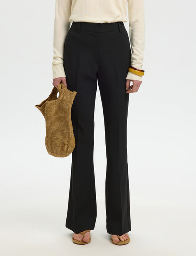 Utsvängda ben ger dessa skräddarsydda byxor en retro-chic silhuett. Med en medelhög midja och en smal passform erbjuder de både komfort och en smickrande form. Sidfickor ger praktisk användning, medan knapp- och dragkedjestängningen säkerställer en säker stängning.