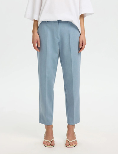Dessa croppade byxor kombinerar en modern silhuett med komfort hela dagen och är ett mångsidigt tillskott till din garderob. De har en medelhög midja, sidfickor och en dragkedja. Det återvunna polyesterfodret ger en behaglig känsla, medan den pressade vecket ger en touch av elegans.