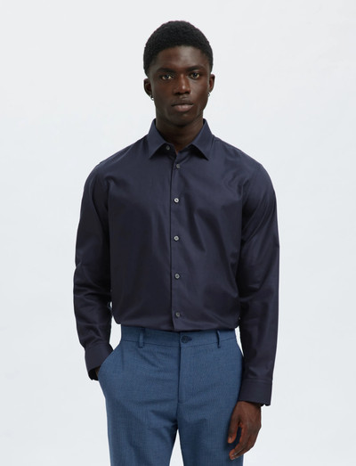 Denna långärmade skjorta är tillverkad för en mjuk känsla och är ett mångsidigt tillskott till varje garderob. Den har en knappstängning fram, knäppta manschetter och en rundad fåll för en förfinad silhuett. Den smala passformen gör den idealisk för både affärs- och formella tillfällen.