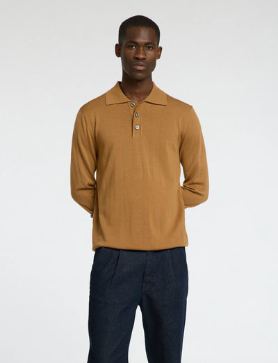 Den här långärmade stickade polotröjan är ett snyggt och bekvämt val för alla tillfällen. Den har en klassisk polokrage och en knappslå. Det stickade tyget är mjukt och andningsbart, vilket gör den perfekt för lager på lager.