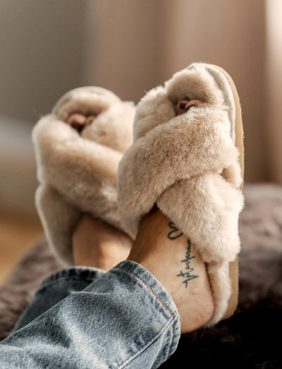 Sjunk ner fötterna i den mjuka komforten hos dessa fårskinnstofflor. Designade med en lätt EVA-sula som ger skön dämpning vid varje steg.