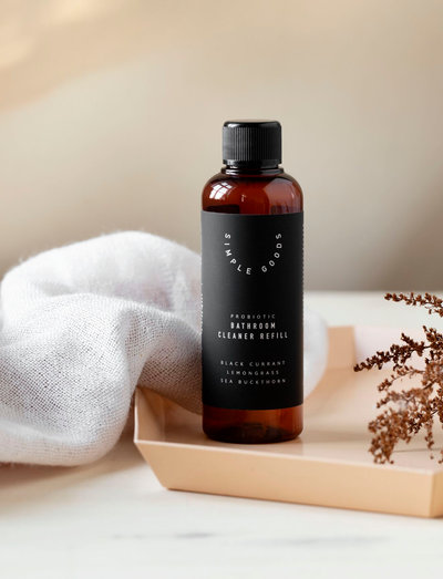Med denna refill-lösning vill Simple Goods uppmuntra till återanvändning av våra sprayflaskor och samtidigt bidra till att minska transporterna av vatten. När du köper denna Refill Bathroom Cleaner tar du bara med dig 100 ml vätska hem. Och från en 100 ml Refill-flaska får du 1 liter färdig rengöringsprodukt. Allt du behöver göra är att tillsätta ljummet vatten.