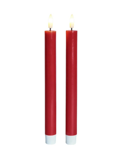 Pack of 2 taper candles. Each candle has a diameter of 2 cm and a height of 20 cm.