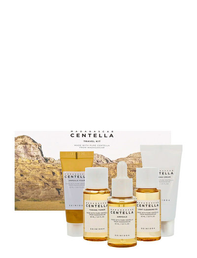 Madagascar Centella Travel Kit är det ultimata hudvårdskitet i resestorlek med 5 delar som innehåller alla produkter i serien Madagascar Centella från Skin1004.