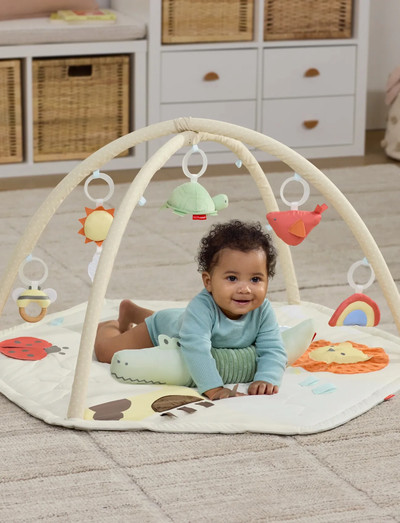 Geometric Wonders Babygym introducerar din bebis till olika djur, former och material på ett lekfullt sätt. Skip Hops söta och bekväma babygym uppmuntrar multisensorisk utforskning genom beröring, syn och ljud. Babygymmet har 17 utvecklande aktiviteter.