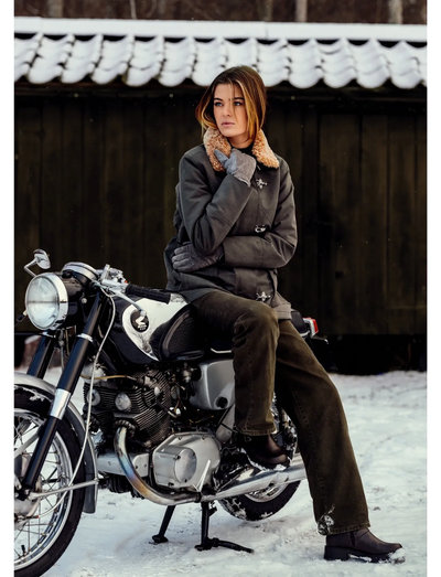 VattentätDenna vinterjacka är designad för värme och komfort och har en blandning av dun- och fjäderfyllning. Yttertyget är helt vattentätt och sömmarna är tejpade för extra hållbarhet. Metallspännen fram och en avtagbar fårskinns krage ger unika detaljer. Praktiska fickor och ett metallmärke fulländar designen.