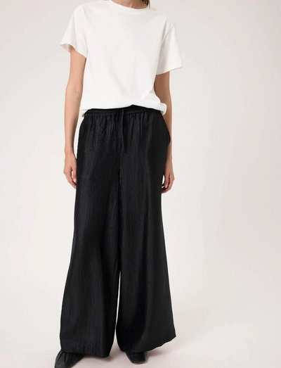 Dessa byxor med vida ben erbjuder en avslappnad passform och en bekväm känsla. Med en dragsko i midjan för justerbar passform är de ett lättburet tillskott till din garderob.