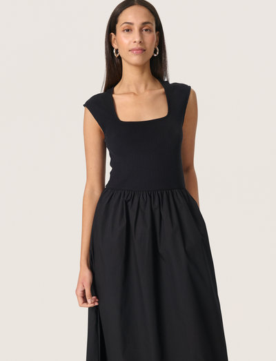 SLSimone Phoebe-klänningen är en elegant och bekväm klänning som passar perfekt för alla tillfällen. Den har en fyrkantig halsringning, ärmslös design och en flytande midilängd. Klänningen är gjord av en mjuk och andningsbar bomullsblend, vilket gör den idealisk för varmt väder.