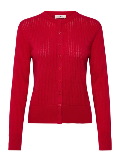 Delikat pointellestickning ger denna kofta en raffinerad, texturerad look. Designen med knäppning framtill ger mångsidiga stylingalternativ, vilket gör den till ett utmärkt lagerplagg.