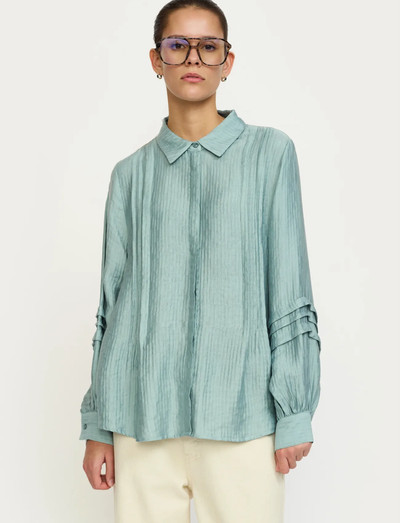 Den här skjortan har en texturerad finish som ger en sofistikerad touch till varje outfit. Designen har en klassisk knappstängning fram och subtilt etagerade ärmar som tillför en unik detalj. Bär den med skräddarsydda byxor eller en avslappnad kjol för en mångsidig stil.
