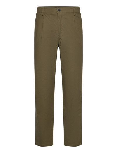 Dessa byxor erbjuder en avslappnad passform och en bekväm känsla. Med en plisserad front och en klassisk knappstängning ger de både stil och praktisk användbarhet.