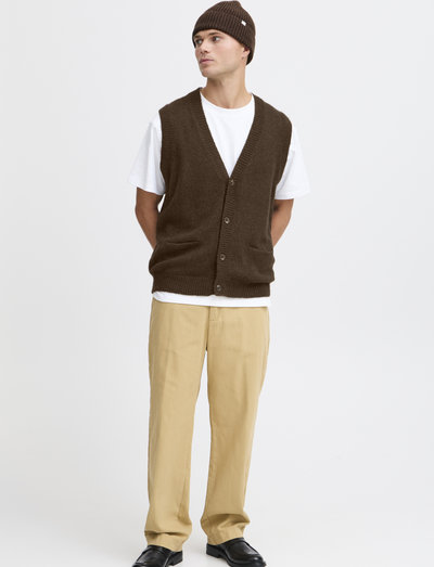 Den här stickade västen är ett snyggt och bekvämt tillägg till din garderob. Den har en klassisk V-ringning och en knappstängning. Västen är gjord av ett mjukt och varmt material, vilket gör den perfekt för lager på lager under de kallare månaderna.
