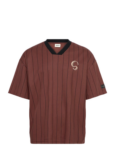 Denna kortärmade tröja har vertikala ränder och ger en klassisk look med en modern twist. V-halsdesignen ger en touch av sofistikering, vilket gör den till ett mångsidigt tillskott till varje garderob.