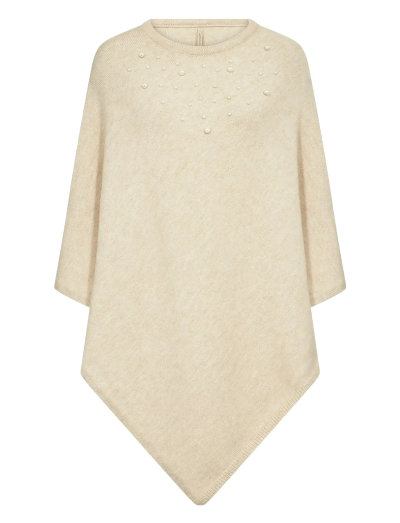Denna stickade poncho ger en distinkt look med sin asymmetriska fåll. Den runda halsringningen är utsmyckad med fina, pärlliknande detaljer. Tillverkad av en mjuk blandning av akryl, polyester och polyamid, ger detta plagg både textur och värme till vilken outfit som helst.