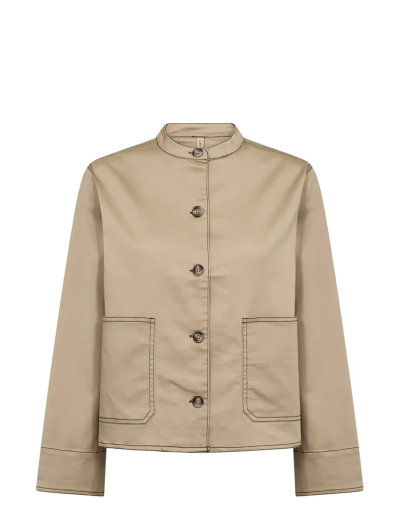 Denna jacka har en elegant mandarin-krage och knappstängning framtill, vilket ger en modern twist till en klassisk silhuett. De två framfickorna är accentuerade med distinkta sömmar, vilket ger en detaljerad touch. Den är tillverkad av en bekväm blandning av bomull, polyester och elastan, vilket ger både struktur och en lätt stretch. Bär den med allt från skräddarsydda byxor till dina favoritjeans.