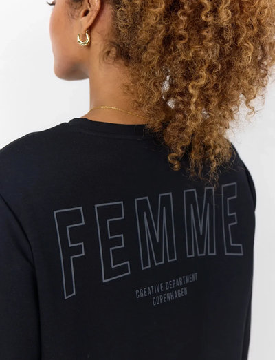 Denna sweatshirt är tillverkad av en mjuk blandning av modal, polyester och elastan, vilket ger en behaglig komfort. Den har en klassisk rund halsringning, långa ärmar och en avslappnad passform, kompletterad med ett snyggt tryck på ryggen. Styla den med en lång jeanskjol och sneakers för en sportig och elegant look.