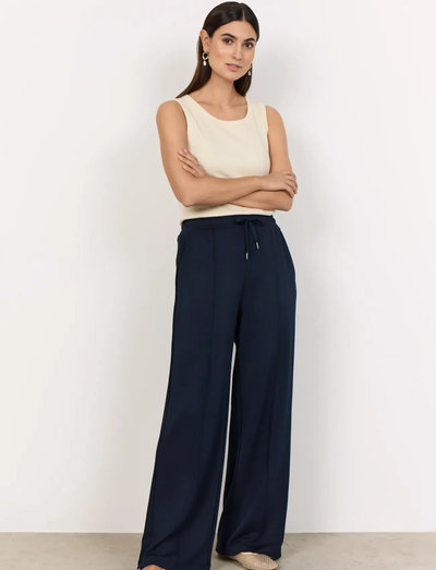 Dessa långa byxor erbjuder en bekväm passform och mångsidig stil, med en elastisk midja med dragsko. Den raka benmodellen gör dem lätta att kombinera med både avslappnade t-shirts och eleganta blusar för en mängd olika stilar.