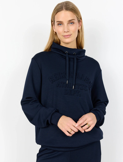 Denna sweatshirt har en hög hals med dragsko och ger en modern twist till en klassisk silhuett. Det mjuka tyget och den avslappnade passformen gör den idealisk för lager-på-lager eller att bäras som den är för en bekväm och avslappnad look.