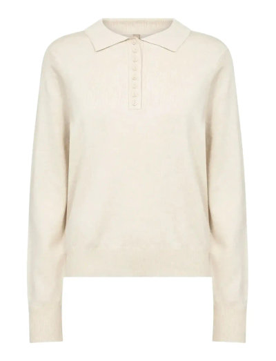 Denna pullover är tillverkad av en mjuk viskosblandning och har en klassisk krage med knäppning. De ribbstickade muddarna ger en touch av elegans till detta mångsidiga plagg, perfekt att kombinera med skräddarsydda byxor eller en kjol.