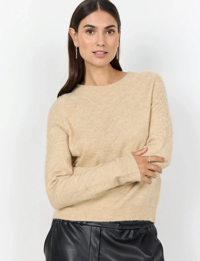 Denna tröja i normal längd har ett delikat texturerat mönster och är tillverkad av en blandning av akryl, ull, polyester och elastan för en bekväm passform. Den ribbade kragen ger en fin detalj, vilket gör den till ett mångsidigt plagg som passar bra med smala jeans eller en midikjol.