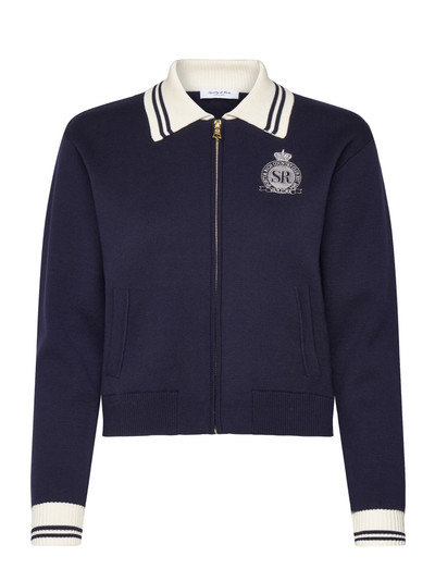 Denna cardigan har en full dragkedja och en klassisk krage, vilket ger mångsidiga stylingalternativ. Ribbade muddar och fåll ger en åtsittande passform, medan emblemet på bröstet ger en distinkt touch till detta bekväma lager.