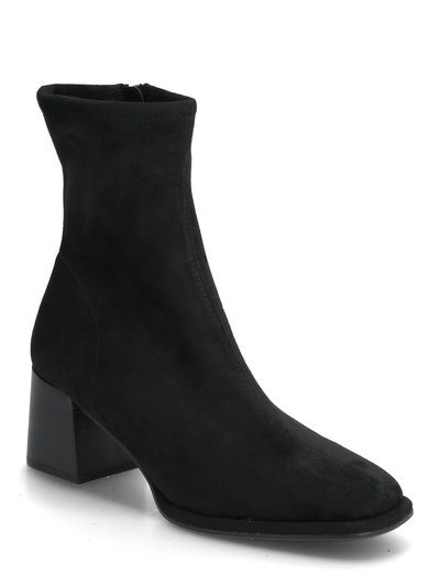 Dessa ankelstövlar har en elegant silhuett som ger en modern touch till varje outfit. Blockklacken ger stabilitet och stil, medan den åtsittande passformen ger en bekväm och säker känsla.