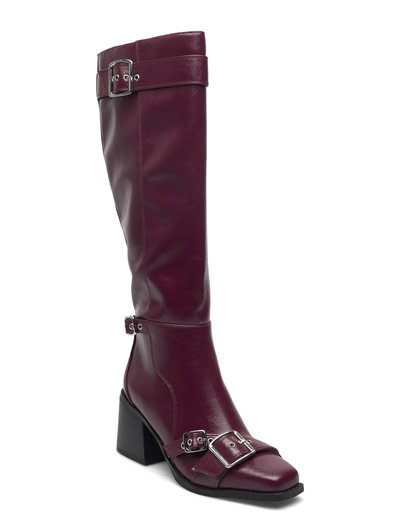 Dessa höga stövlar är detaljerade med spännen och ger en slående silhuett. Blockklacken ger bekväm höjd, medan den eleganta ovandelen säkerställer en mångsidig look.