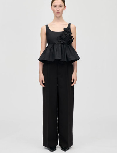 Denna peplumtopp är tillverkad i krispig ekologisk bomull och har breda axelband samt slående 3D-blomsterapplikationer framtill. Designen har en figursydd liv som går ut i en smickrande peplumfåll, och den knäpps snyggt med en dold dragkedja baktill.