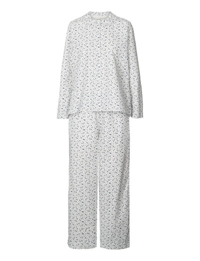 Detta pyjamasset är tillverkat i ekologisk bomullspoplin och erbjuder både stil och komfort. Skjortan har en knäppning och en fin, liten rund krage som ger en feminin touch, medan de löst sittande byxorna har resår i midjan och praktiska sidfickor. Franska sömmar invändigt ger en delikat och lyxig finish.