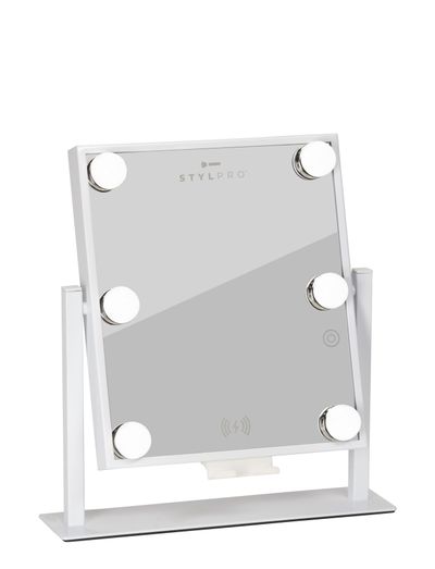 The STYLPRO Glam & Groove is a Hollywood Vanity Mirror that plays music, charges your phone wirelessly, provides perfect soft lighting for makeup application, connects phone calls via its built-in speakers and more!