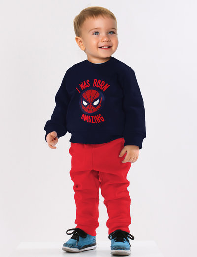 Den här Spider-man-pyjamassen är perfekt för små fans av spindelmannen. Toppen har en rolig Spider-man-grafik och frasen "Jag föddes fantastisk." Byxorna är enfärgade och har en bekväm passform. Tillverkad av mjukt och bekvämt polyester, den här pyjamassen kommer garanterat att hålla din lilla varm hela natten.