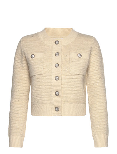 Lyft din look med denna stickade kofta med textur, som har en rund hals och utsmyckade knappar. Den har även två påsydda fickor på bröstet.