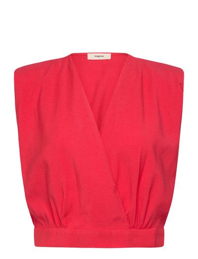 Denna ärmlösa topp har en smickrande V-ringning och en croppad längd, vilket ger en modern silhuett. Designen har subtila axelvaddar för en strukturerad look och en bekväm elastisk fåll.