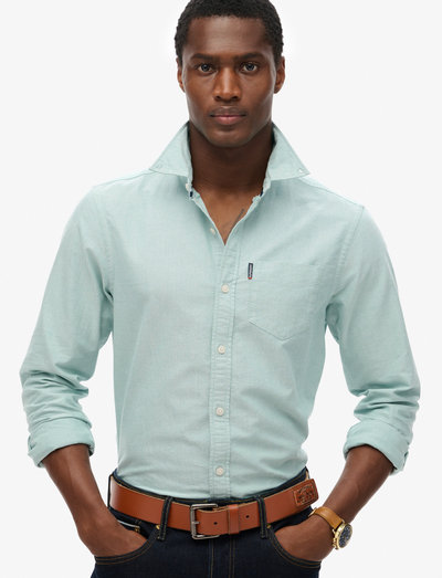 Den här Superdry Oxford-skjortan är ett klassiskt plagg som kan stylas upp eller ner. Den har en knapp-ner-krage, långa ärmar och en bröstficka. Skjortan är gjord av ett bekvämt och andningsbart tyg som är perfekt för att bära hela dagen.