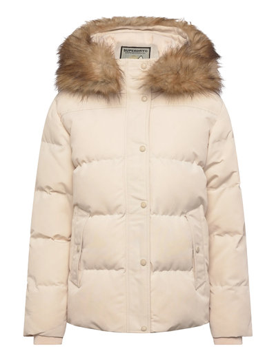 Denna pufferjacka har en bekväm och avslappnad passform, varken för smal eller för lös. Den har både tryckknappar och dragkedja, samt två utvändiga fickor och en invändig ficka, alla med tryckknappsstängning. Bungee-fållen nedtill och elastiska muddar hjälper till att hålla värmen inne, medan den avtagbara fuskpälskanten på huvan ger en stilfull touch. Ett broderat logomärke pryder ärmen och fulländar looken.