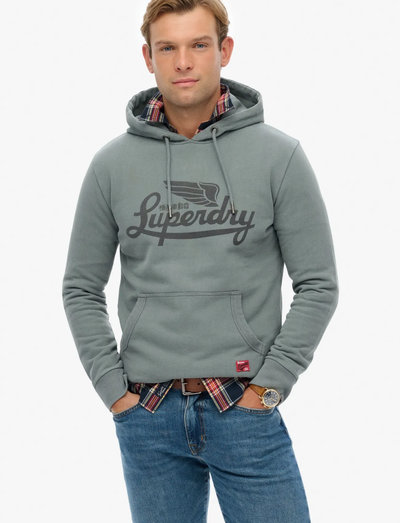 Denna hoodie har ett mjukt borstat foder som ger förstklassig komfort och värme. Designad med en avslappnad passform är den idealisk för lager-på-lager-styling under alla årstider. Den har även ribbade muddar, en justerbar huva med dragsko och en signaturlogga på bröstet.