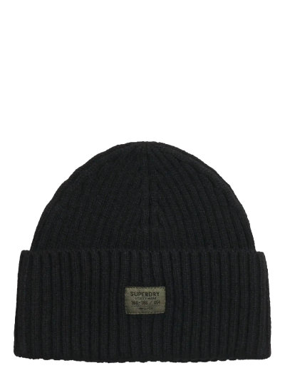 Den här stickade mössan har en uppvikt kant och ett ullrikt material, vilket gör den till ett mysigt alternativ för kallare väder. Den ribbade texturen ger subtila detaljer, medan märket ger en touch av branding.