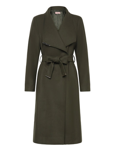 Denna ullkappa erbjuder en raffinerad silhuett med en ståkrage och ett knytbälte i midjan. Dess rena linjer och minimalistiska design gör den till ett mångsidigt tillskott till varje garderob, lätt att klä upp eller ner för olika tillfällen.