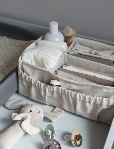 Förvaringsboxen gör det enkelt att organisera de saker du behöver under sköttiden. Lådan är perfekt för förvaring av blöjor, krämer, tygblöjor och andra viktiga skötselsaker.