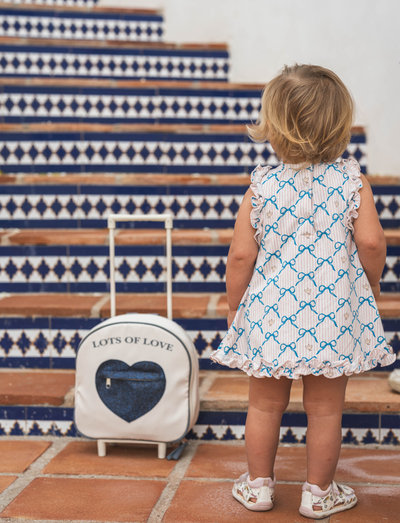 Den här ärmlösa bodyn är ett charmigt val för småttingar. Den har ett fint bågtryck och en rynkad design, vilket ger en touch av sötma till vilken outfit som helst. Bodyn är gjord av mjuka och bekväma material, vilket säkerställer en mysig passform för ditt barn.