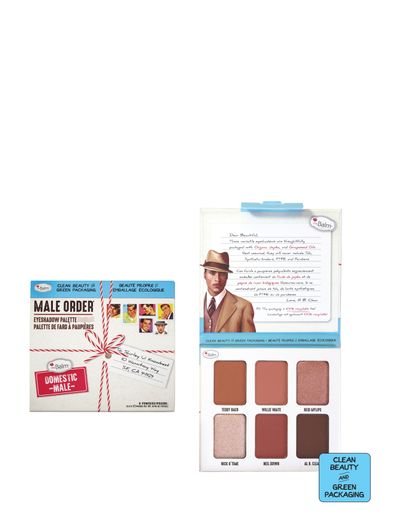Vi introducerar mångsidiga ögonskuggor fyllda med ekologiska jojoba- och druvkärneoljor. Domestic Male innehåller varma taupefärgade ögonskuggor med krämiga toner och texturer för looker som ger stor WOW-effekt! Male Order är skapad med rena formulas som är högpigmenterade och fyllda med hudälskande botaniska extrakt. Vi har filtrerat bort allt skräp - ingen talk, syntetiska bindemedel, PTFE eller parabener, plus 100 % återvinningsbara förpackningar. Med lysande nyanser som blandas vackert är denna Male det perfekta paketet.