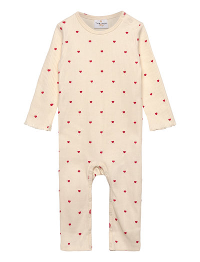 This one-piece suit from THE NEW Siblings is both adorable and practical perfect for everyday little adventures. It features a charming all-over print of small hearts that adds a sweet and playful touch. The suit has long sleeves and legs, along with practical snap buttons at the shoulder and along the legs, making it easy to put on and take off.- Slim fit - All-over heart print - Snap buttons at shoulder and along legs - Long sleeves and legs - Soft and comfortable for everyday wear- GOTS Organic, certified by Control Union, 842535.