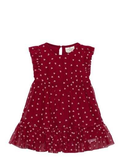This dress from THE NEW Siblings is perfect for festive occasions with its romantic and playful design. Its made from layered tulle with a delicate all-over heart print and features sweet ruffle details at the sleeves and hem. The dress has a round neckline and a comfortable fit with a gently flared skirt, offering plenty of freedom of movement and an airy look.- Ruffle sleeves and hem - All-over heart print - Light and airy fit - Layered tulle - Perfect for parties and special occasions
