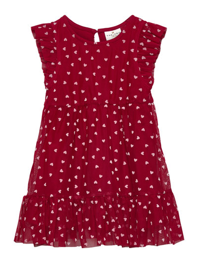 This dress from THE NEW Siblings is perfect for festive occasions with its romantic and playful design. Made from layered tulle with a delicate all-over heart print, it features charming ruffle details at the sleeves and hem. The flared skirt and lightweight feel offer beautiful movement and a dreamy silhouette ideal for parties, play, and special moments.- Ruffle sleeves and hem - All-over heart print - Light and airy layered tulle - Comfortable fit with lots of movement - Perfect for festive occasions and dress-up days- GOTS Organic, certified by Control Union, 842535.